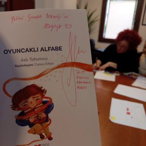 Etkinlik öncesinde, Çınarlı’daki tüm çocuklara yazarın Oyuncaklı Alfabe kitabını hediye ettik. Tohumcu, çocuklarla kitabı üzerine söyleşi gerçekleştirdi ve birlikte resimler çizdiler. Aslı Tohumcu’ya desteği için teşekkür ederiz. @aslitohumcu🙏🏼