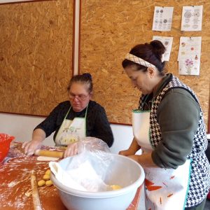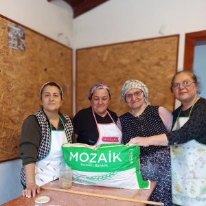 Kadınlar Marmara Adalar Belediyesi Çınarlı Kültür Sanat Yerleşkesi mutfağında buluşuyor birlikte bayram hazırlığı yapıyorlar. Baklavalar açıldı.