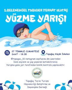 Topağaç Tarım, Turizm, Hayvancılığı Geliştirme ve Dayanışma Derneği 27 Temmuz Cumartesi günü yüzme yarışması düzenliyor.